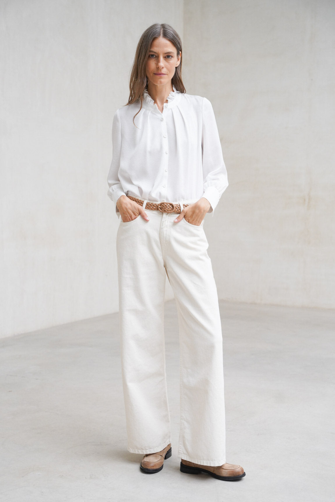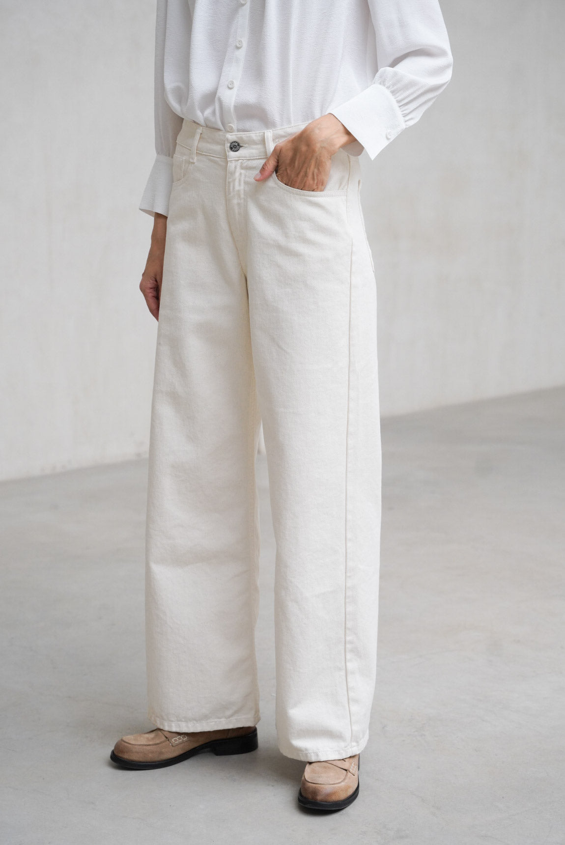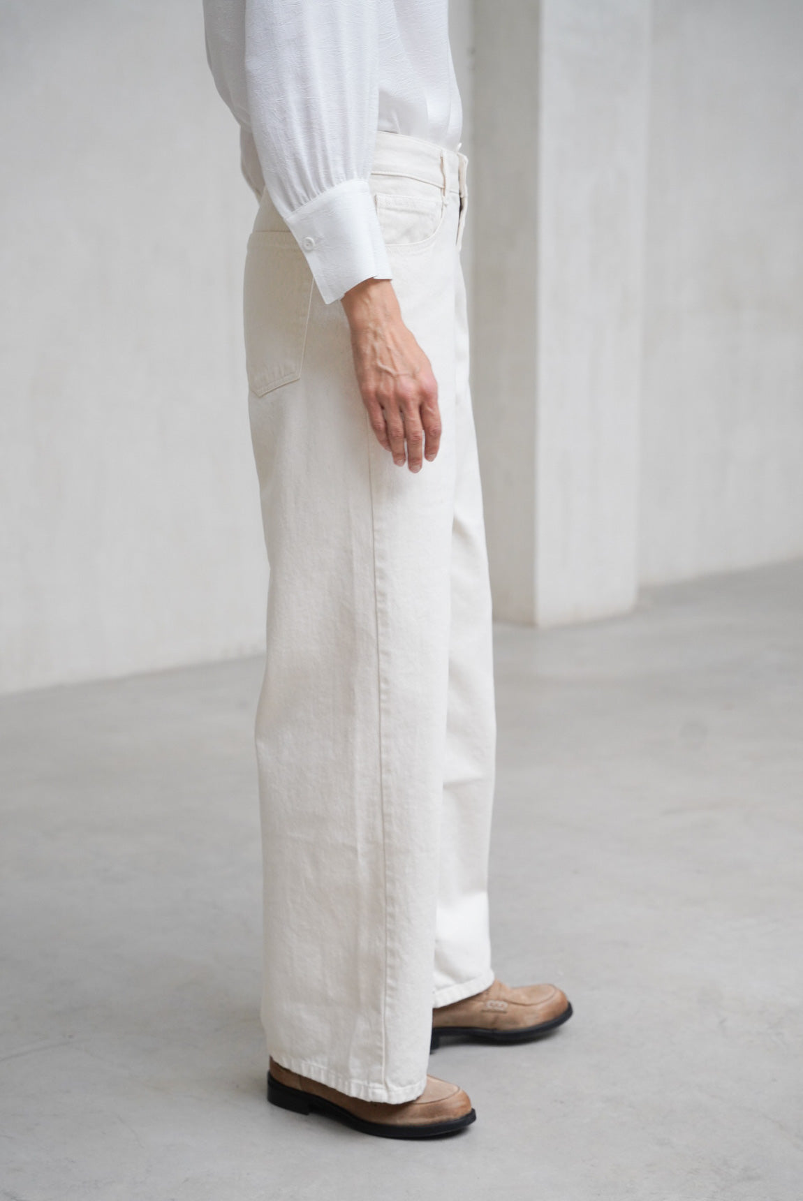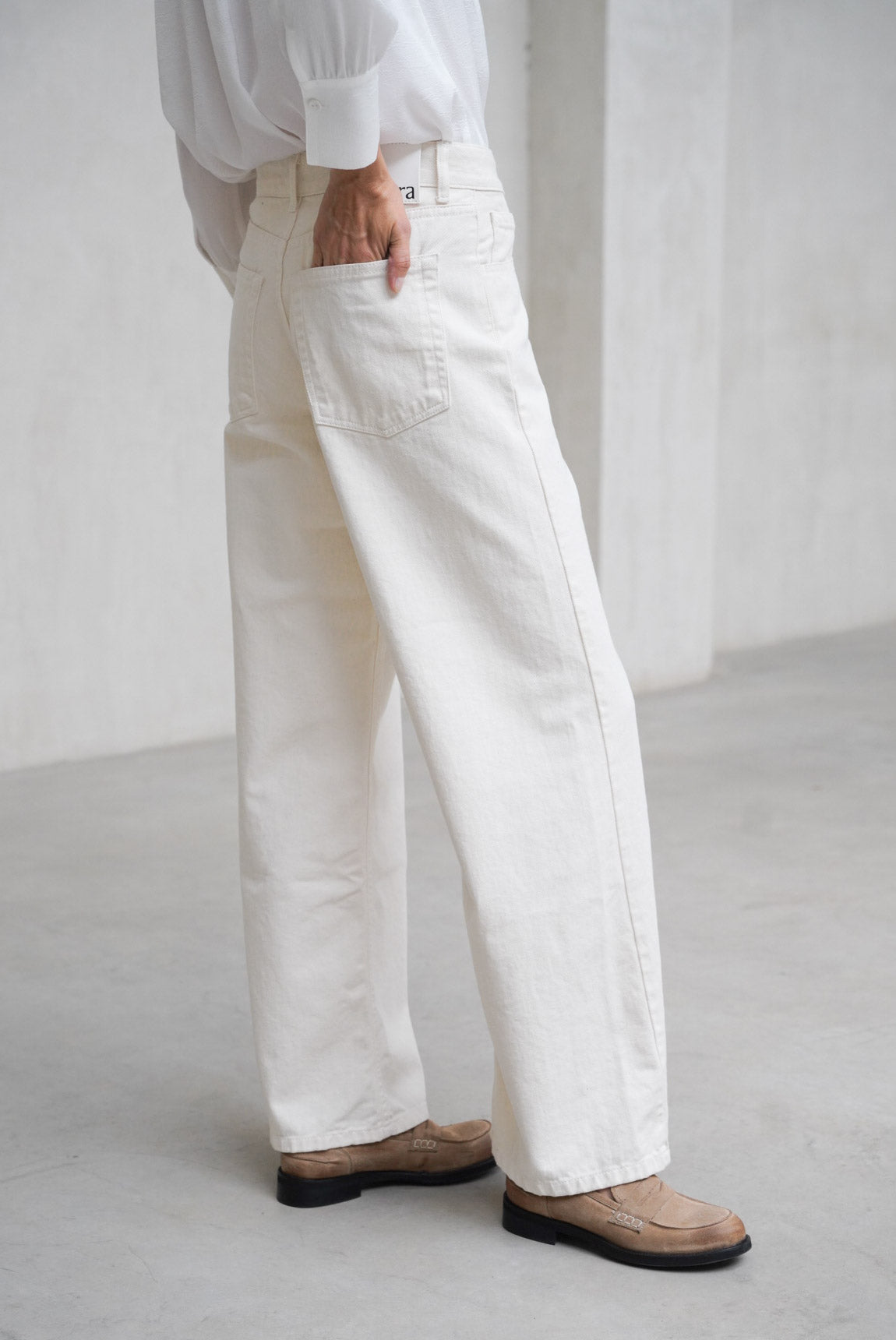 - Vaquero de pierna recta en color crudo.