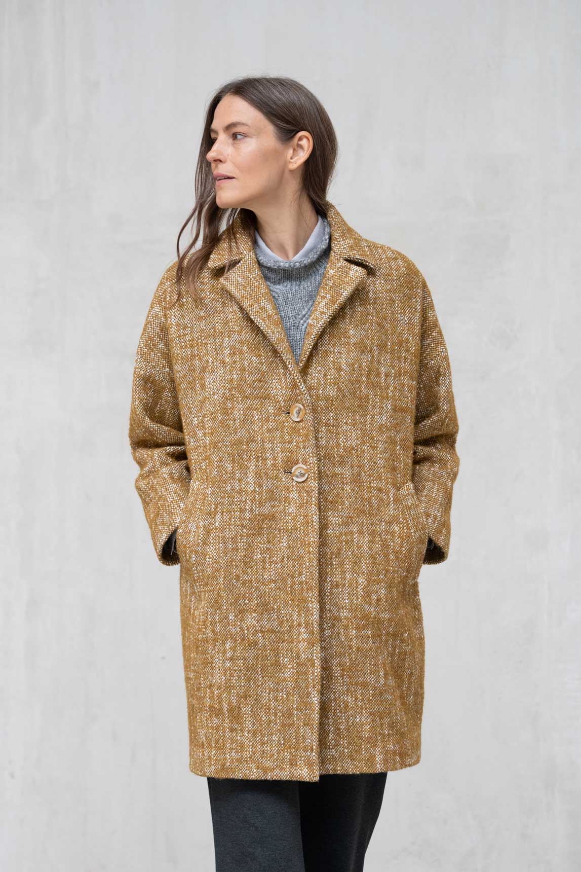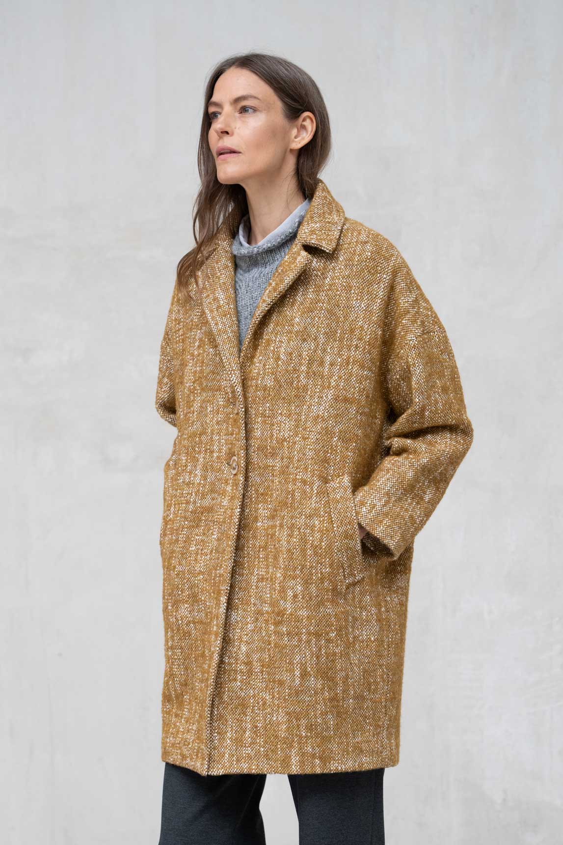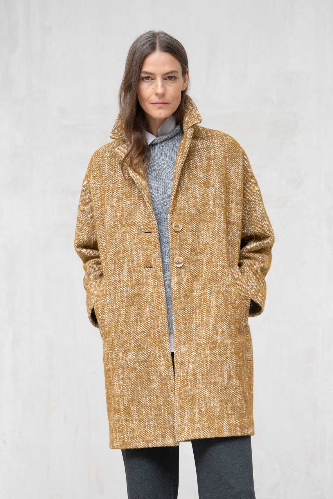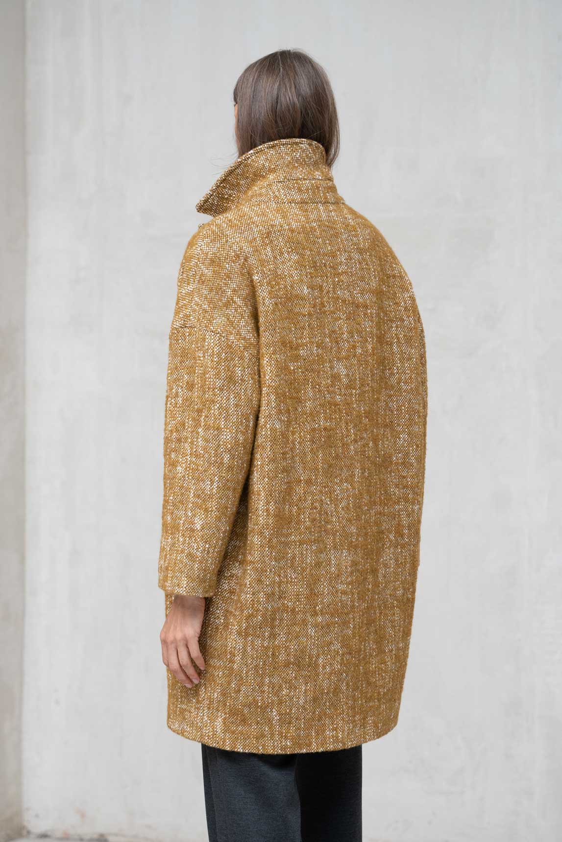 El abrigo Monza mostaza jaspeado es la prenda perfecta para quienes buscan un toque de color sofisticado en sus estilismos de invierno. Su tono cálido ilumina cualquier outfit, mientras que su diseño atemporal y tejido confortable garantizan abrigo y comodidad. Combínalo con prendas neutras para un contraste elegante o con tonos tierra para un look armonioso.
