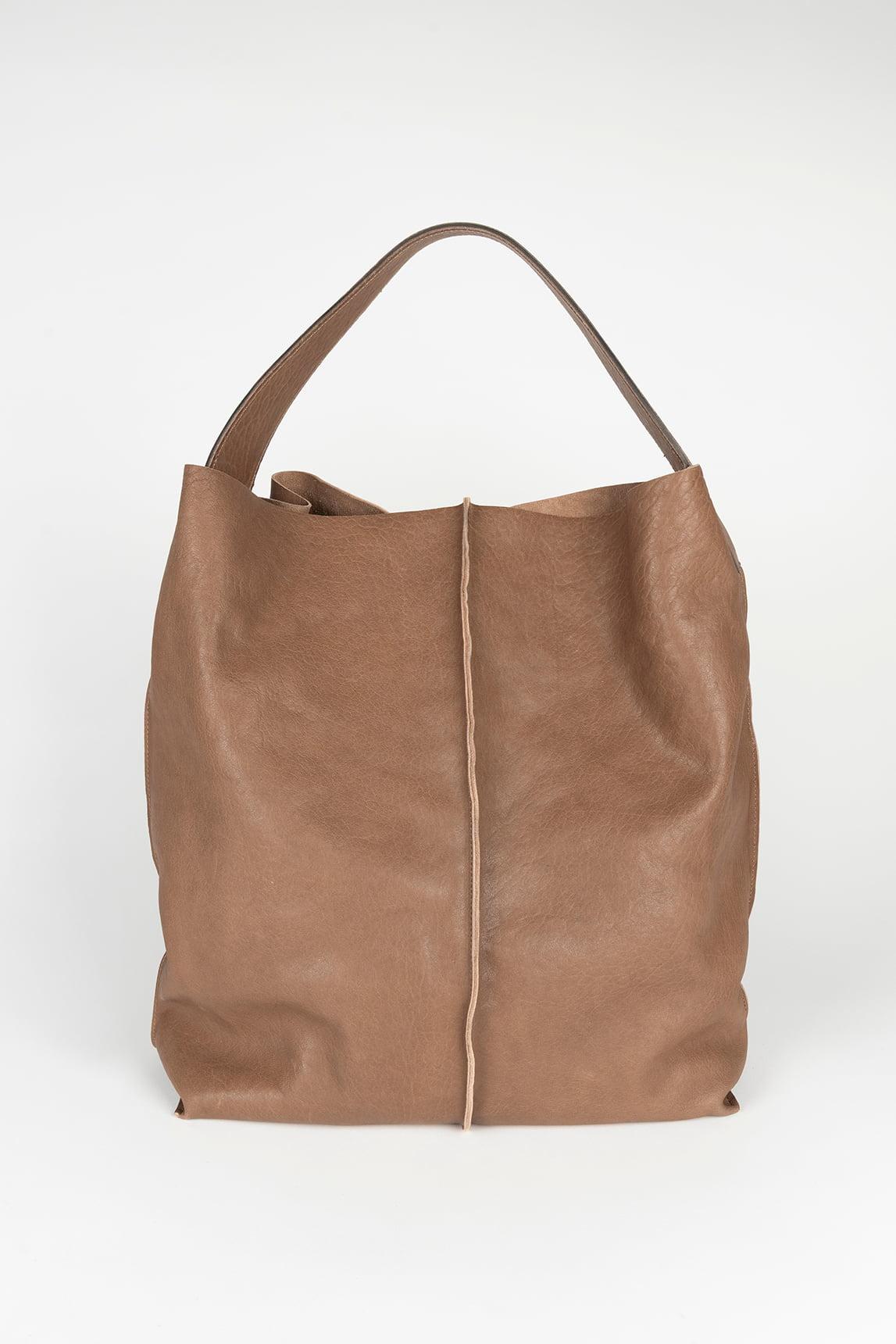 The Arelis taupe bag is a contemporary leather shopper that combines soft volume with clean lines. Its design with visible center stitching adds personality without overwhelming the piece, maintaining a minimalist and sophisticated aesthetic. The taupe tone adds depth and understated elegance, making it an ideal neutral bag to pair with black, gray, white, or earth tones. The flexible structure allows for a natural drape that softens the silhouette, while the wide handle makes it comfortable to carry on your shoulder all day long. Measuring 24 x 19 x 6.5 cm with a 9 x 6.5 cm handle, it offers ample space to accompany your daily routine with practicality. It's perfect as a taupe shopper bag, a large leather handbag, or a versatile accessory for the office and everyday use. The Arelis taupe is an essential piece among large leather bags: understated, practical and designed for a refined urban style. We strive to display colors as accurately as possible, but they may vary slightly from reality.