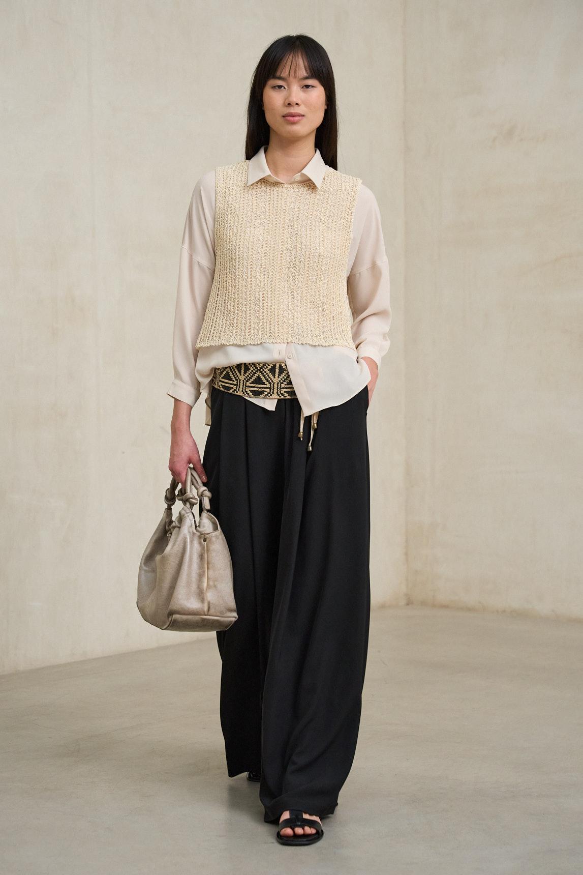 The off-white tone enhances its natural and elegant character, making it easy to combine with sand, beige, or white tones to create luminous and balanced styles. A versatile piece that adds texture and sophistication to relaxed looks.