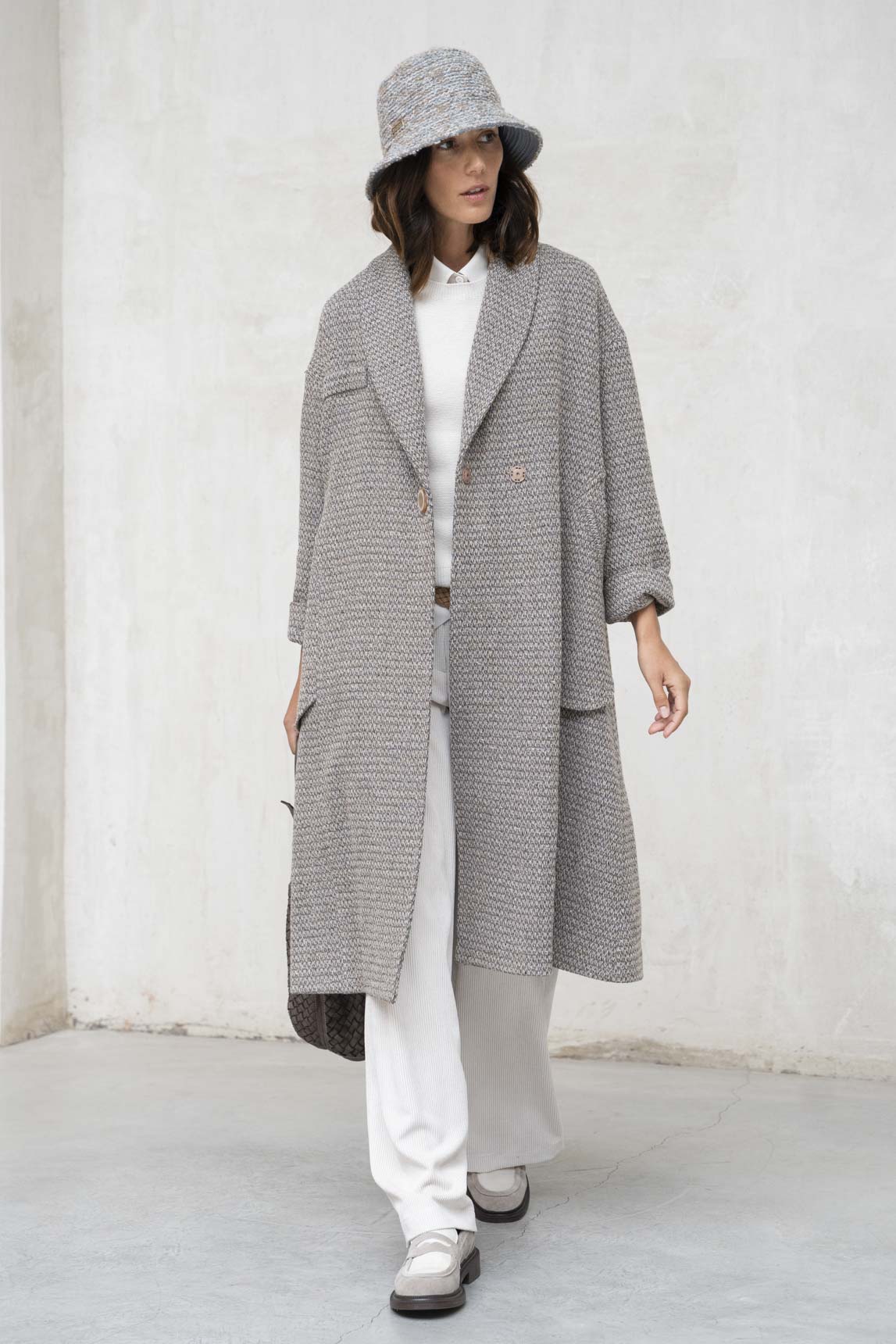 The heather gray Tivoli coat combines the warmth of knitwear with a sophisticated, contemporary design. Its lightweight construction makes it ideal for transitional wear or layering over warmer winter garments. Perfect for a casual-chic look, it adapts to both office outfits and more relaxed everyday styles.