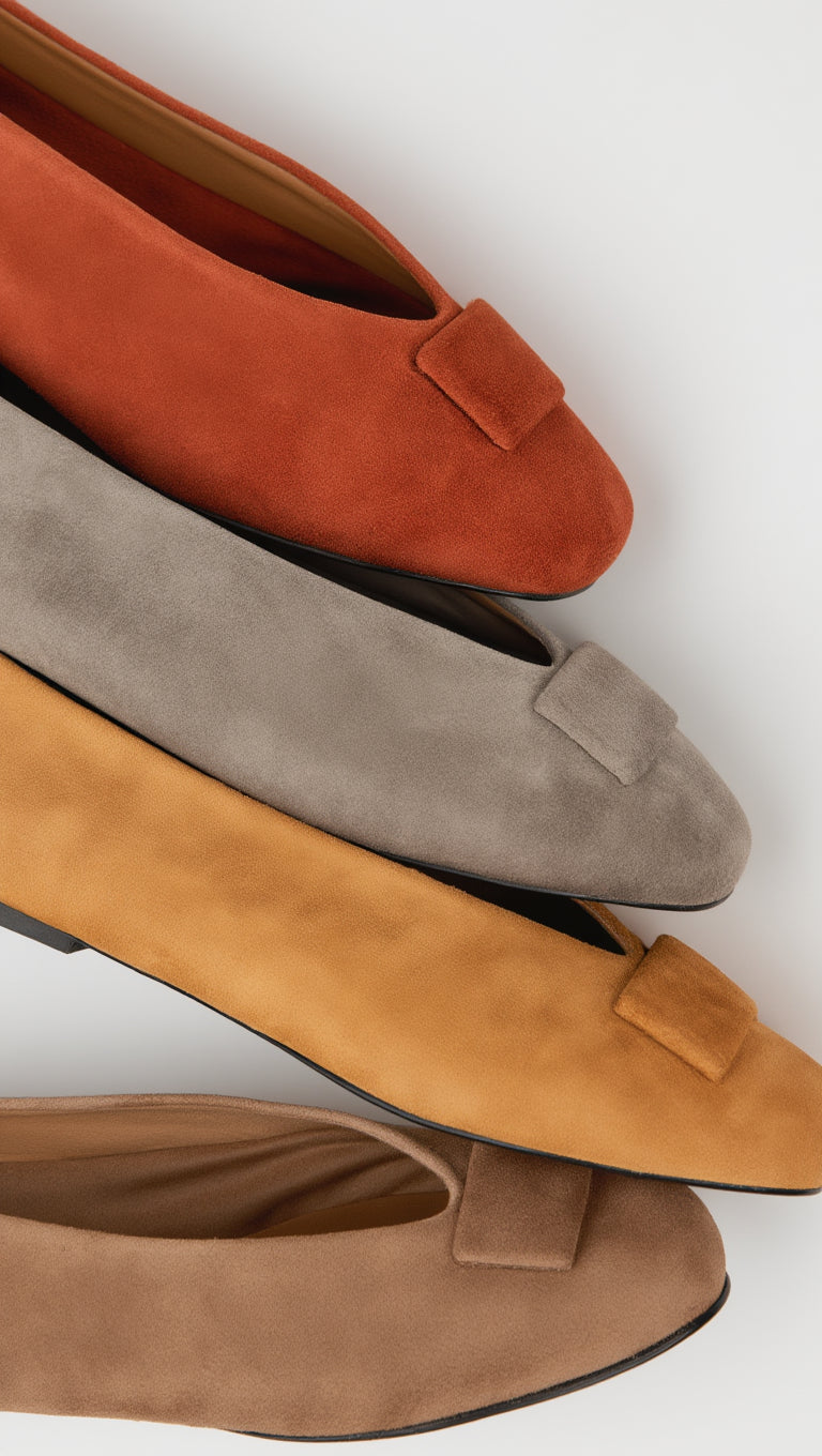 The Elvire Mustard ballet flat adds a touch of warmth to the collection. The suede finish enhances the intensity of the mustard hue, creating a sophisticated and enveloping effect. Its clean silhouette and slightly defined neckline give identity to the design, while the comfortable insole and flexible sole ensure a comfortable and stable step. Mustard combines especially well with ecru, denim, olive green or earth-toned outfits, functioning as a balanced and elegant color accent. A ballet flat with personality that elevates neutral styles without losing harmony. We strive to display colors as accurately as possible, but they may vary slightly from reality.