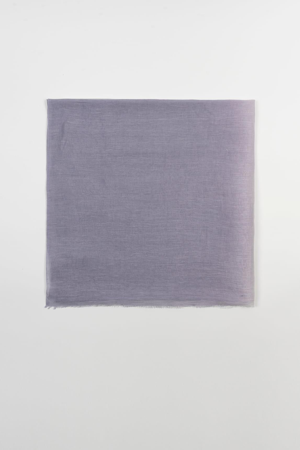 Women's scarf made from a natural blend of 70% linen and 30% cotton. Its light and airy fabric features a delicate gradient of lavender and white tones, with a slightly irregular texture characteristic of linen that adds a natural feel and movement. The frayed edges complete its handcrafted and relaxed finish. The Lune lavender scarf exudes calm and brightness, making it the perfect accessory for spring. Ideal for pairing with neutral or light-colored garments, it adds a soft and sophisticated touch of color to any look. We strive to display colors as accurately as possible, but they may vary slightly from reality.