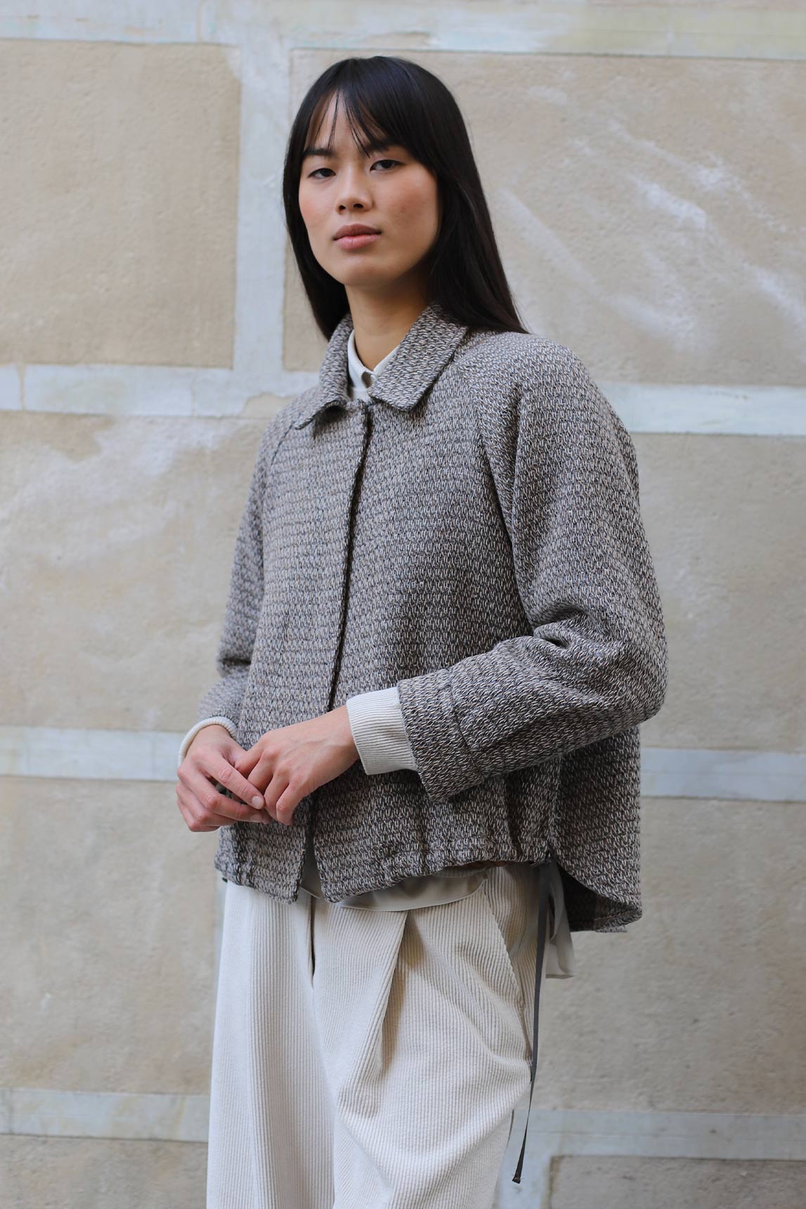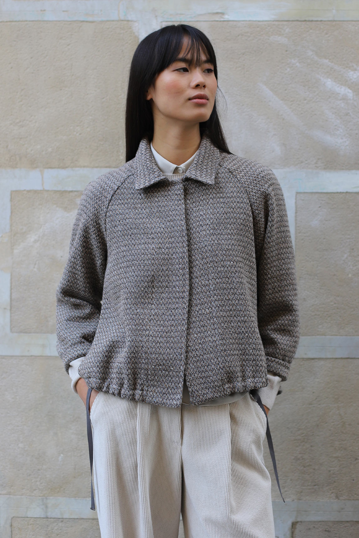 La cazadora Novara es la prenda ligera que completa cualquier look con un aire sofisticado y práctico. Su tejido jacquard bicolor aporta textura y profundidad al color, mientras la silueta recta con manga raglán favorece y permite superponer cómodamente camisas o punto fino. El cuello camisero y el cierre de botones rematan un diseño limpio y versátil, ideal para entretiempo con vaqueros, sastre claro o faldas midi.
