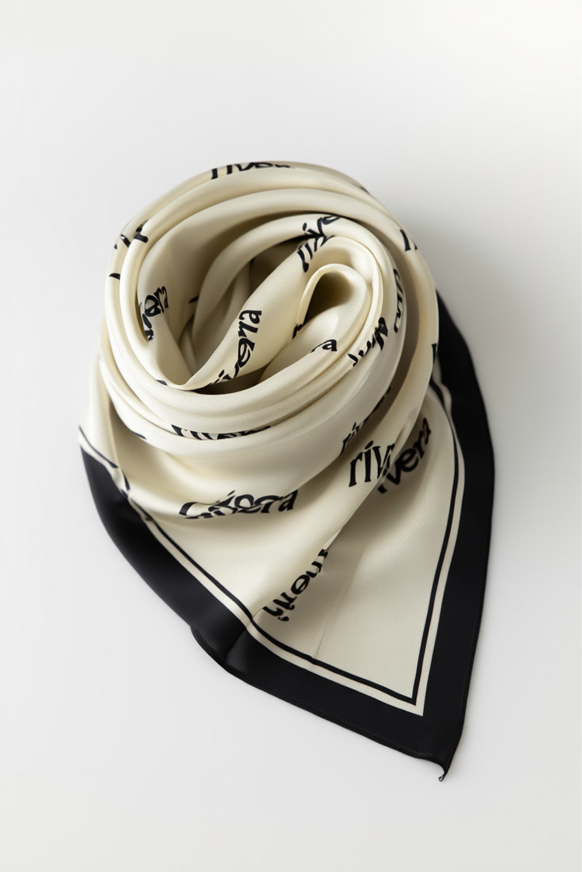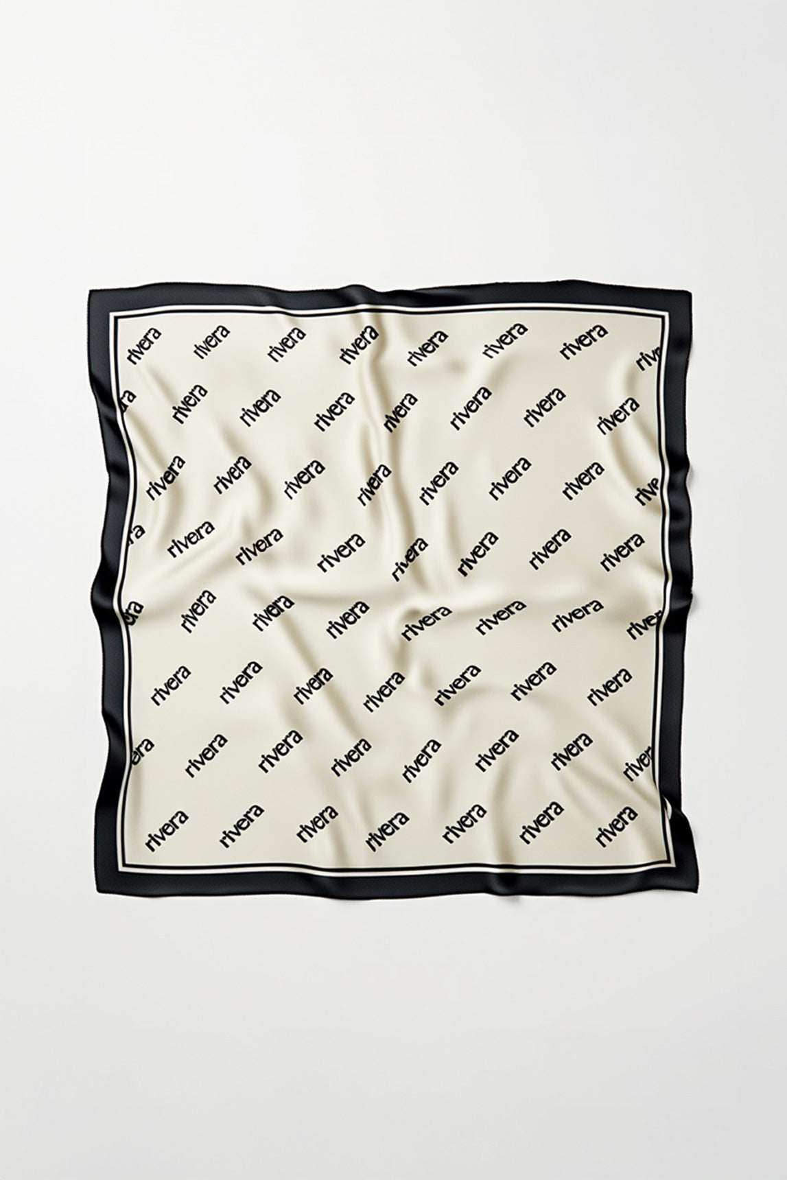 Este pañuelo de seda de Rivera aporta un toque sofisticado y atemporal a cualquier conjunto. Su diseño con logo Rivera refuerza la identidad de la marca, mientras que la combinación de tonos neutros lo convierte en un accesorio versátil. Ideal para llevar al cuello, anudado al bolso o como detalle distintivo en looks formales y casuales.