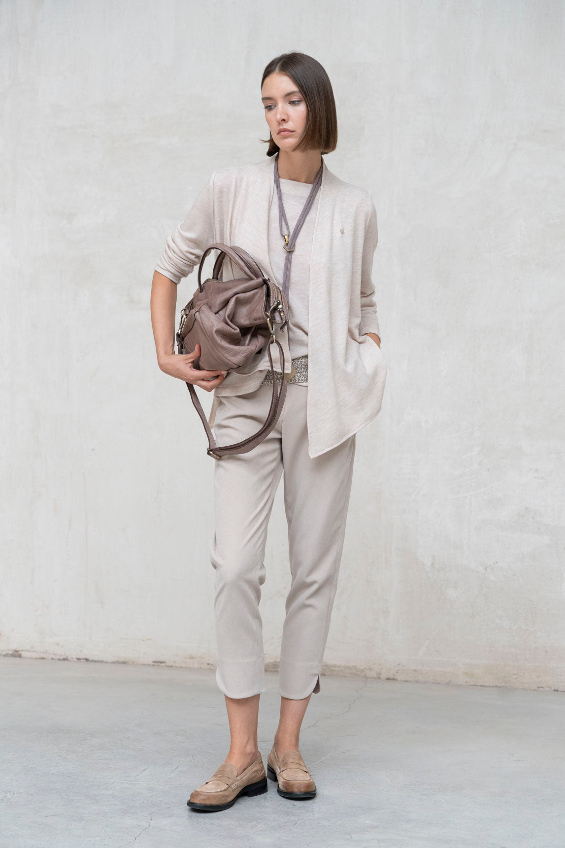 Este fajín de textura bouclé es una pieza clave para tus looks de otoño e invierno. Su mezcla de tonos beige y topo aporta calidez, suavidad visual y un aire natural que combina con una gran variedad de prendas. El tejido mullido añade volumen sin sobrecargar, mientras que las cintas de grosgrain topo, con terminales metálicos, permiten un ajuste cómodo y seguro. Ideal para elevar estilismos con jerséis, vestidos de punto o pantalones con un toque acogedor y sofisticado.