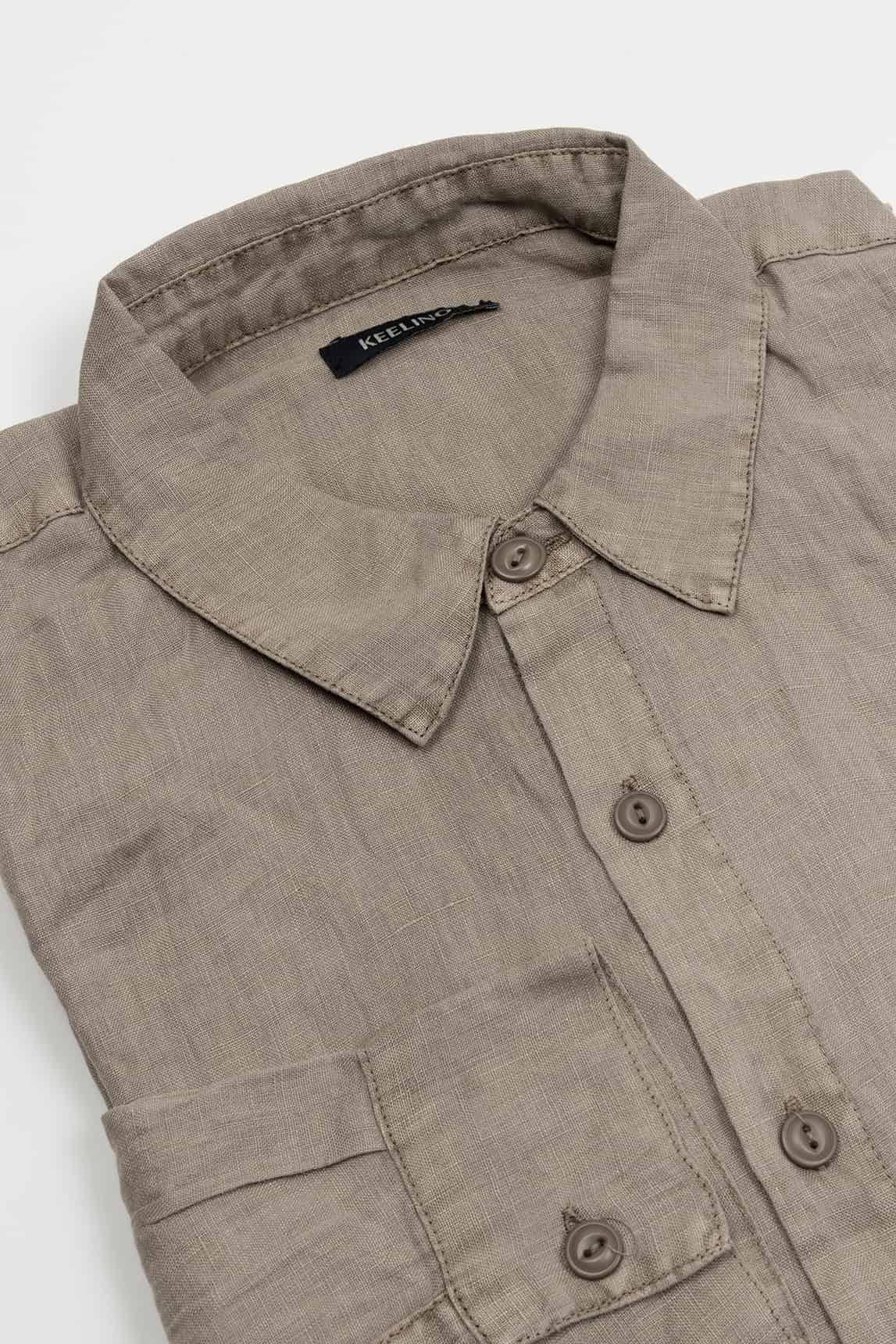 Camisa de hombre de manga larga en tono topo, con silueta recta y diseño liso de aspecto natural. El modelo presenta cuello clásico, botonadura frontal vista y puño abotonado, manteniendo una imagen sobria y bien equilibrada. La superficie muestra una textura visible que aporta matiz al color y refuerza un acabado relajado, mientras la estructura ligera favorece una caída cómoda y una presencia discreta.