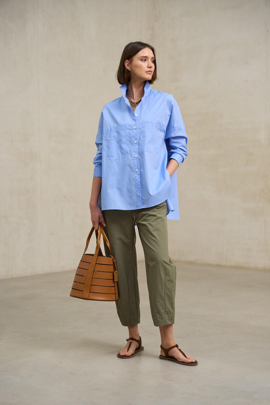 El tono azul medio aporta profundidad sin resultar oscuro, combinando fácilmente con blancos, crudos, arena, verde oliva o tonos tierra. Es una camisa versátil pensada para el día a día, perfecta para looks de oficina relajada o estilismos urbanos contemporáneos.