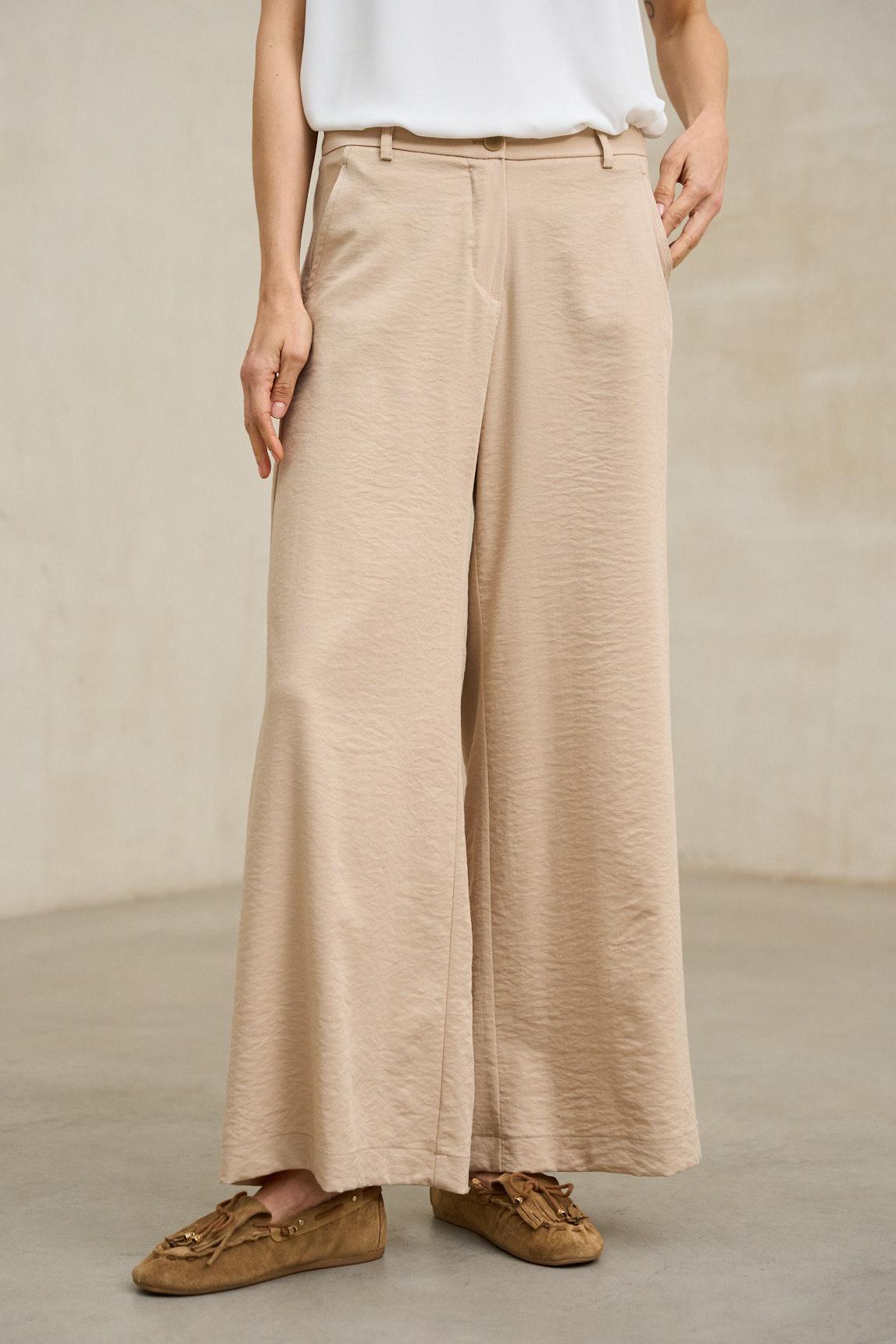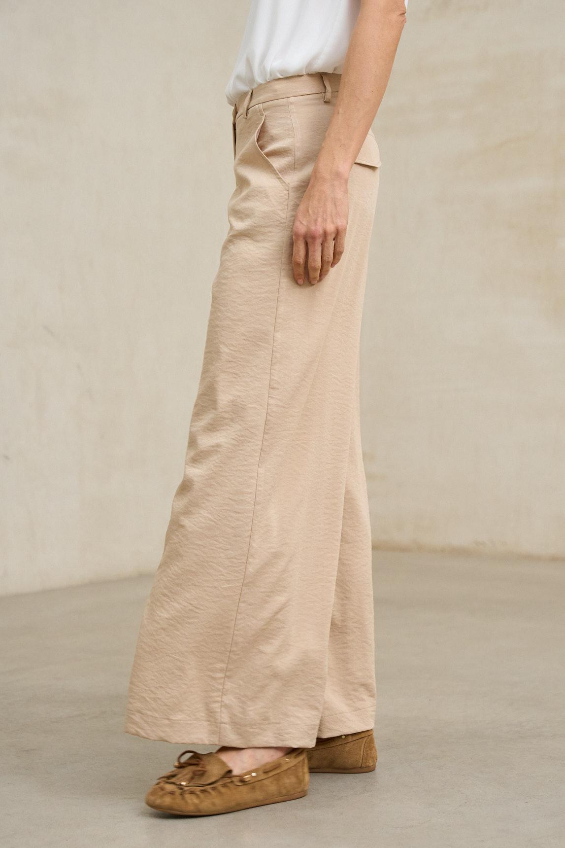 El pantalón Mirel arena destaca por su silueta amplia y depurada, diseñada para aportar equilibrio entre comodidad y sofisticación. Con pernera ancha y caída fluida, crea un movimiento natural que estiliza la figura sin perder estructura. La cinturilla limpia y el acabado minimalista refuerzan su estética atemporal, mientras que el tono beige suave lo convierte en una pieza clave para un armario versátil. Es ideal para combinar con camisas ligeras, tops neutros o chaquetas estructuradas, adaptándose tanto a estilismos relajados como a propuestas más formales. El Mirel arena funciona como fondo de armario contemporáneo: fácil de combinar, elegante y pensado para acompañar looks equilibrados durante toda la temporada. Nos esforzamos por mostrar los colores de la forma más fiel posible, pero pueden variar ligeramente respecto a la realidad.