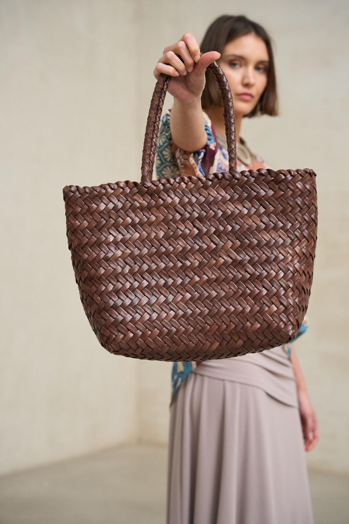 The brown finish enhances the artisanal look of the braiding and makes it a wardrobe staple: a brown leather bag that never goes out of style.