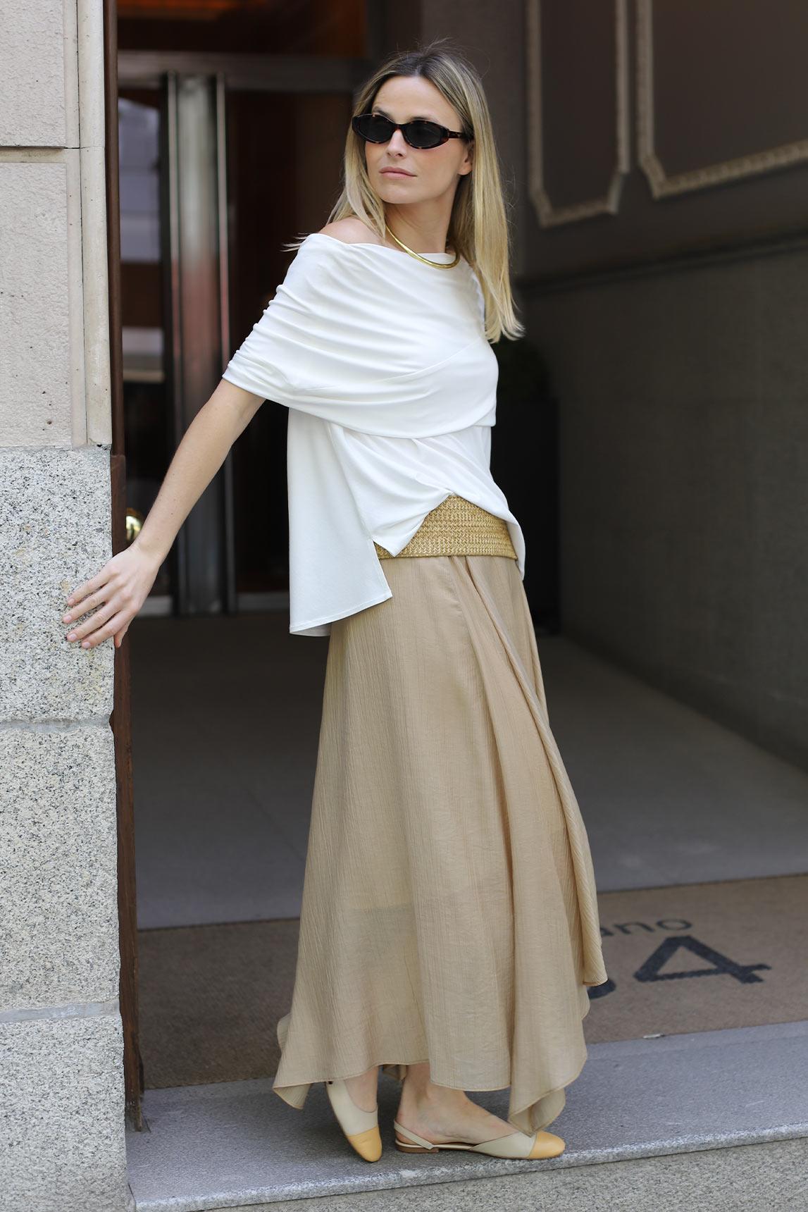 The white color adds brightness and sophistication, making it easy to combine with wide-leg trousers, sand tones, beige, or monochromatic outfits. An elegant and timeless piece that fits both relaxed and more refined styles.
