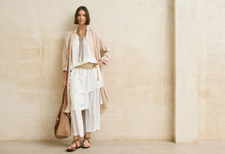 'Warm Mist' é uma coleção inspirada na luz suave e nas paisagens terrosas. Apresenta silhuetas fluidas, tecidos leves e estruturas delicadas que combinam a elegância natural com um luxo discreto.
