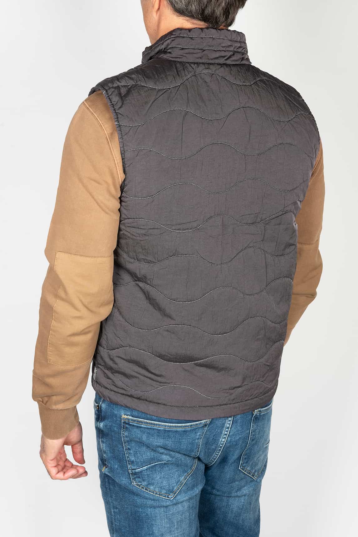 El chaleco acolchado en gris antracita es una capa versátil que aporta abrigo sin añadir volumen. Su diseño limpio y deportivo funciona en looks casual urbanos y como segunda capa bajo abrigos cuando baja la temperatura.