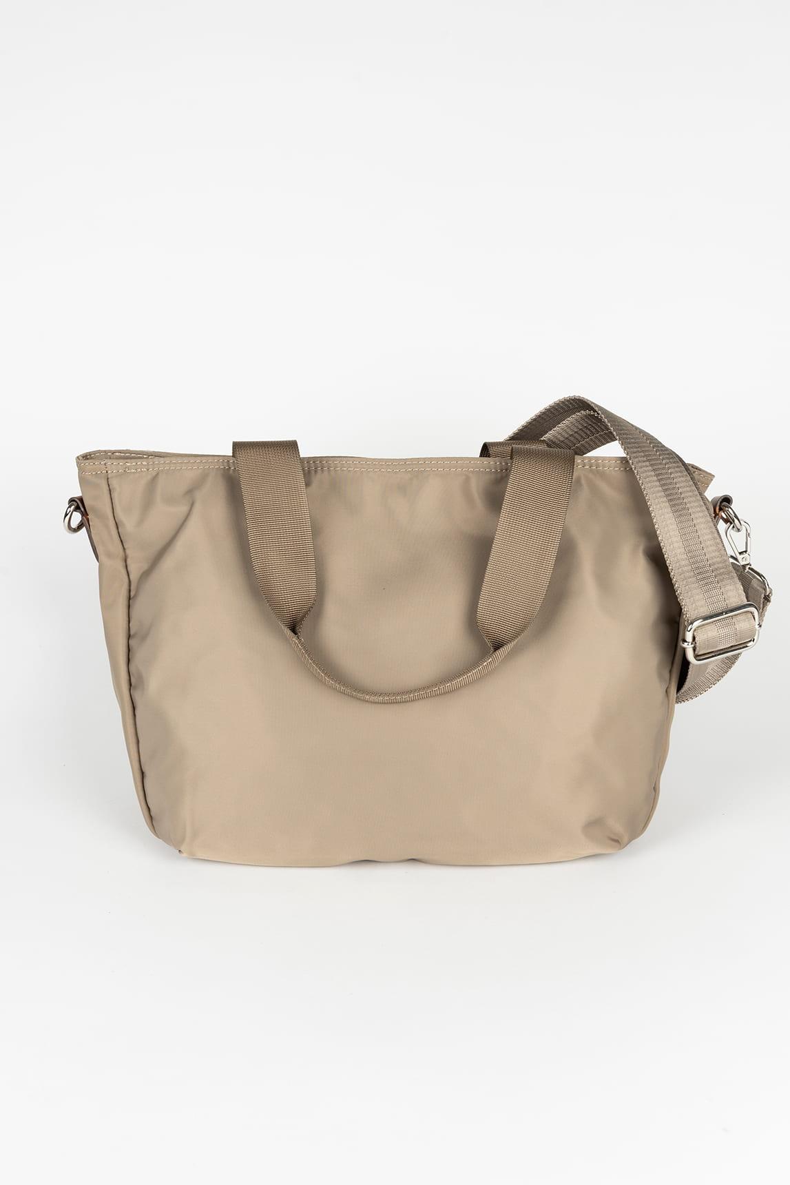 Bolso tote en nylon técnico color caqui, ligero, funcional y pensado para el día a día. Su diseño minimalista y su acabado suave lo convierten en una opción versátil para quienes buscan un bolso cómodo, resistente y fácil de combinar.