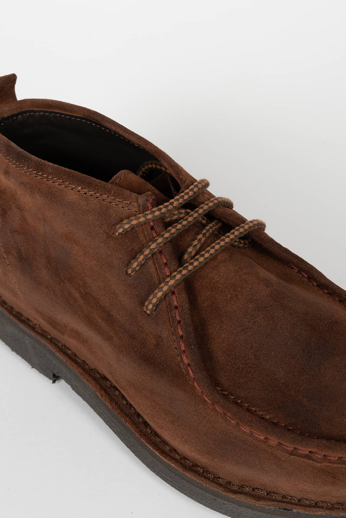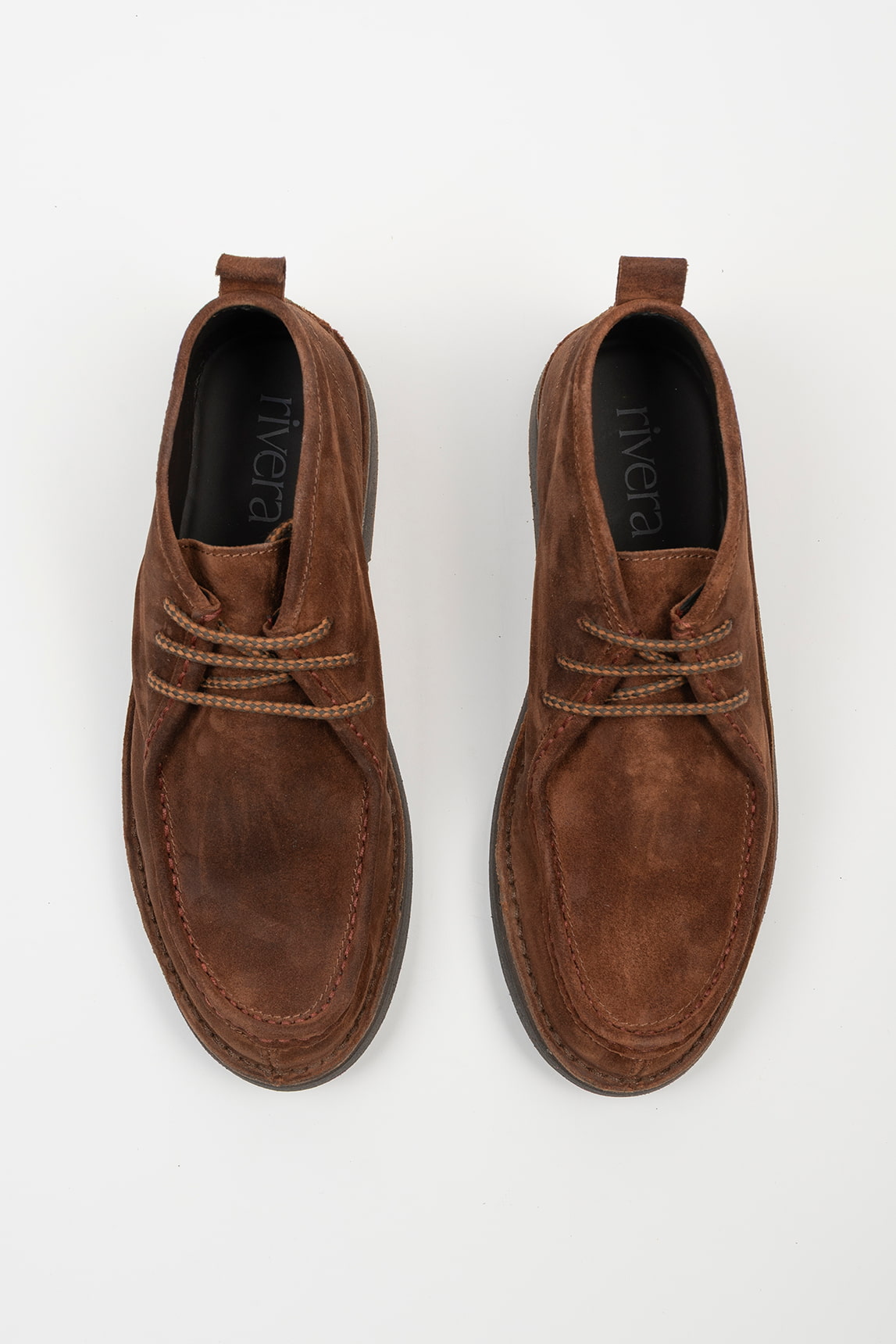 - Botín de hombre confeccionado en piel de ante en color marrón.