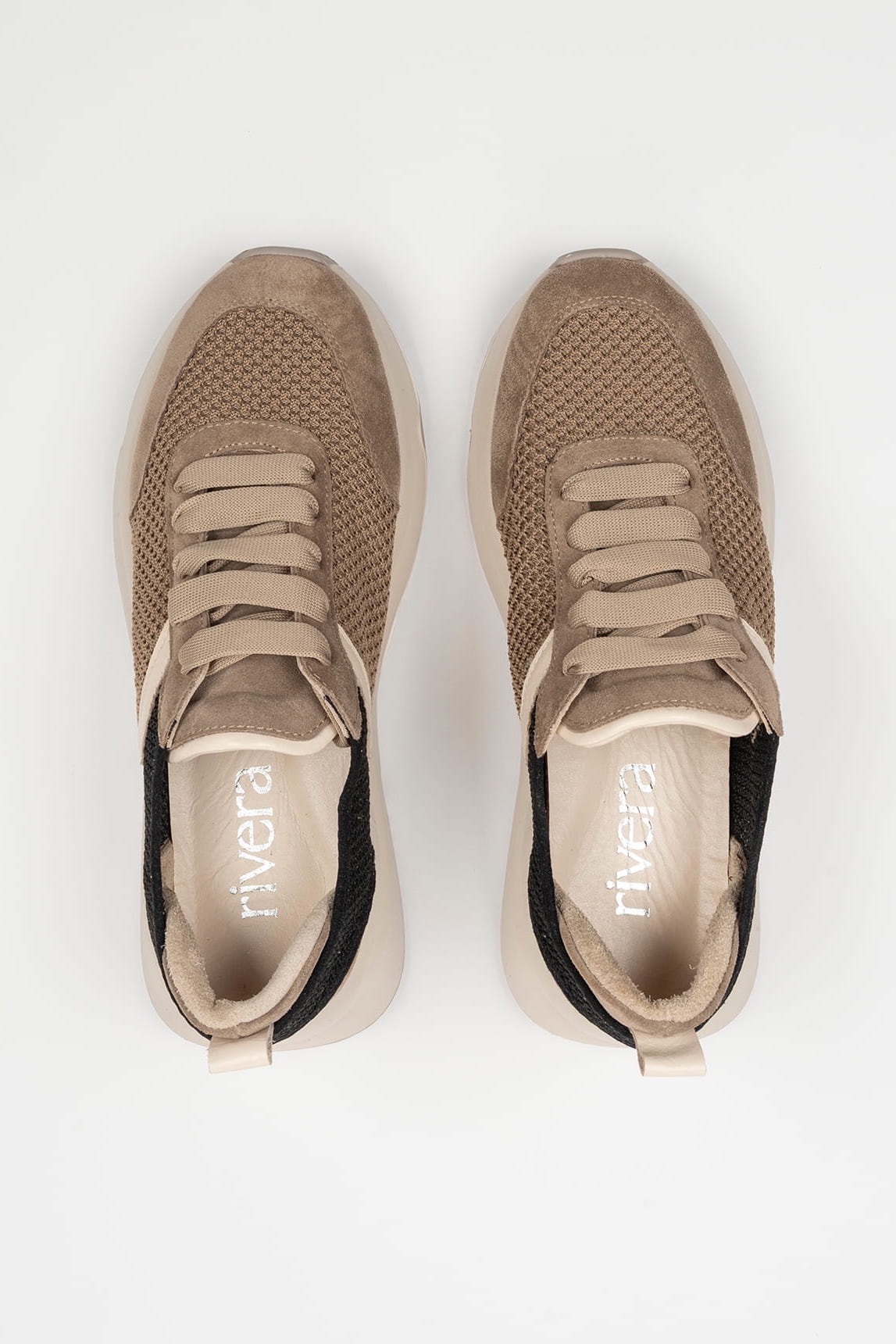 La zapatilla de mujer Bianca combina ligereza y confort con un diseño urbano muy fácil de llevar. Su mezcla de malla y ante en tonos arena con negro la convierte en una aliada perfecta para el día a día, viajes o looks casual con vaqueros y vestidos.